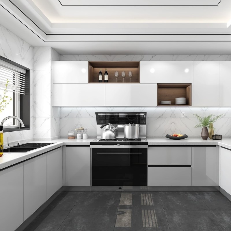 Υψηλά ODM / OEM σύγχρονη πολυτελή αδιάβροχη πυρόστατη στερεόχοινα μονόμορφα ντουλάπια κουζίνας 11