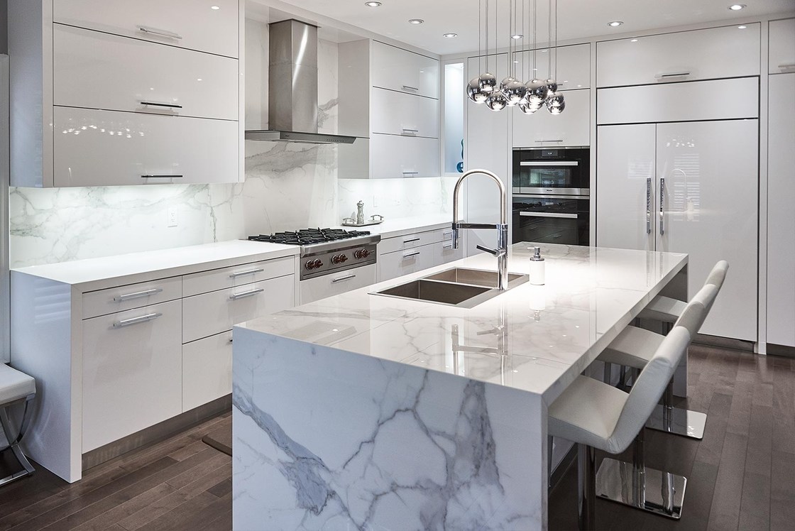 Υψηλά ODM / OEM σύγχρονη πολυτελή αδιάβροχη πυρόστατη στερεόχοινα μονόμορφα ντουλάπια κουζίνας 2