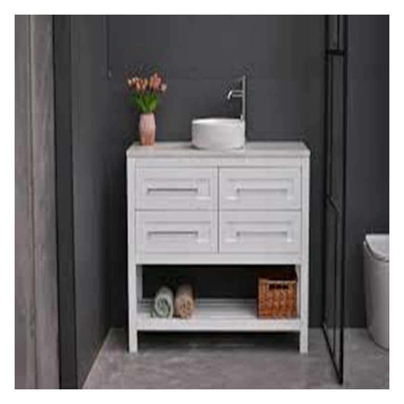Στυλ Shaker Στερεό ξύλο μπάνιο ντουλάπι ματαιοδοξίας με επεξεργασία επιφάνειας λάκα και νεροχύτη 27
