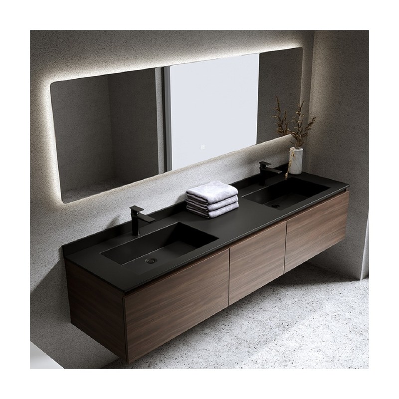 Ξύλινο μοντέρνο στυλ διπλό νεροχύτη του μπάνιου με προσαρμοσμένο πλάτος και ορθογώνιο 2