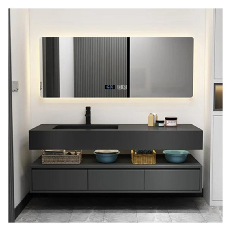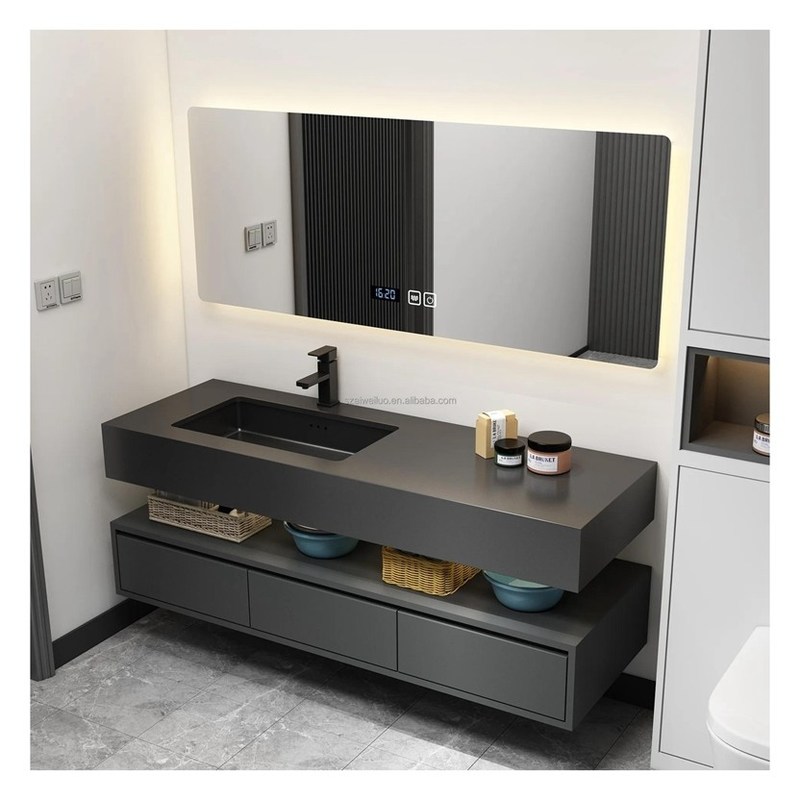 Στον τοίχο μοντέρνο σχεδιασμό σκούρο λακαρισμένο ντουλάπι μπάνιου για διαμερίσματα και ξενοδοχεία 24