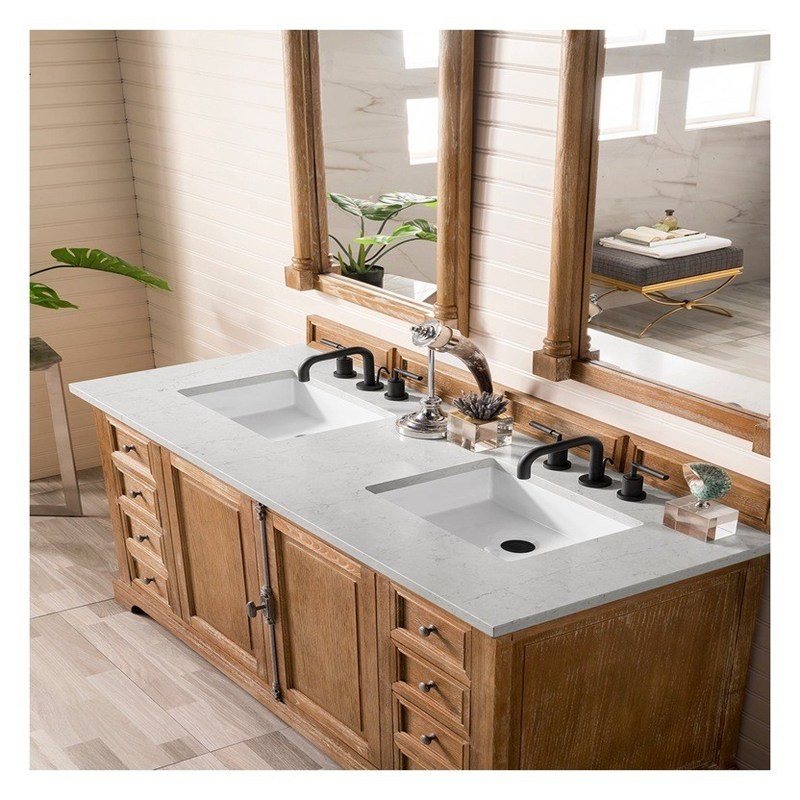 Λοξοφόρο μπάνιο από στερεό ξύλο με White Rock Slab countertop και βρύση 15
