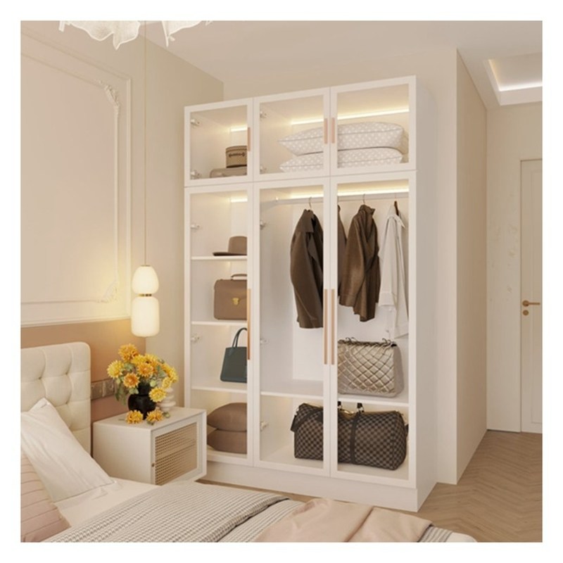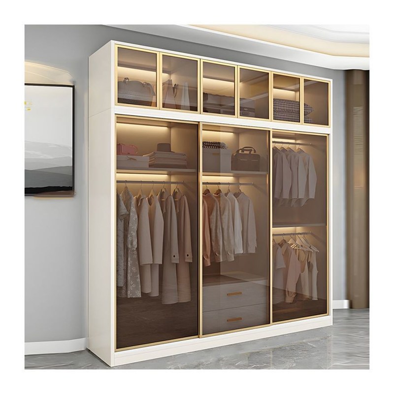 Ρυθμίσιμο ύψος κομψό λευκό αλουμίνιο πλακέτο γυάλινο πίνακα πόρτες στερεό ξύλο ντουλάπα 2