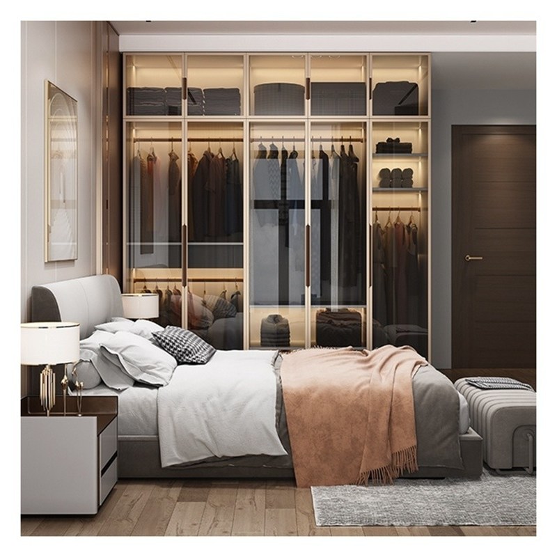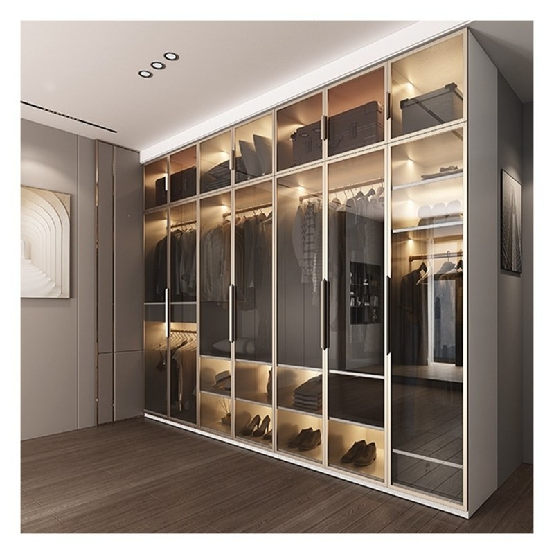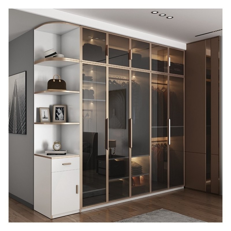 Ρυθμίσιμο ύψος κομψό λευκό αλουμίνιο πλακέτο γυάλινο πίνακα πόρτες στερεό ξύλο ντουλάπα 11